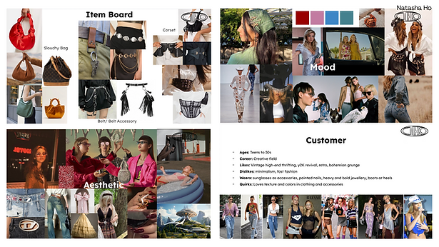 The branding evolved directly from the garments. The creator logo "CIHO" originated from a belt buckle sketch designed for a corset and was later rendered in Rhino3D with glass and metal textures so it could exist as both a logo and a physical object. Its industrial quality nods to metallic emblem branding seen in labels like Diesel, while reframing that visual language within a contemporary female perspective.